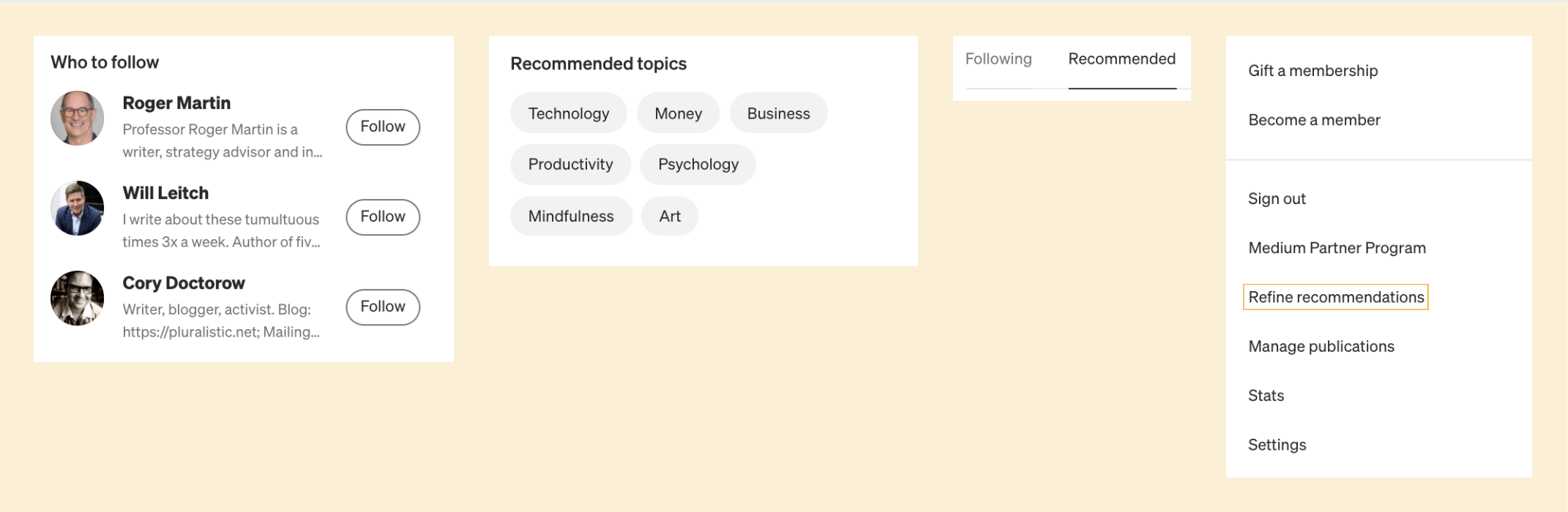 Better placement of Medium’s “see less like this” and “refine recommendations” buttons so that readers can fine-tune their recommendations.